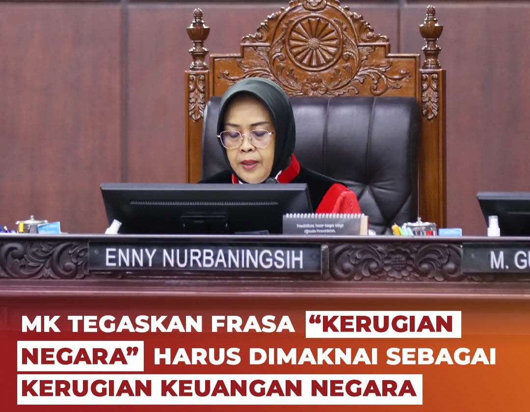 Adapun frasa “kerugian keuangan negara”, menurutnya, lazim digunakan dalam rezim hukum pidana, khususnya tindak pidana korupsi, yang berorientasi pada penghukuman serta mensyaratkan adanya unsur kesalahan tertentu. (R1/Humas MKRI)