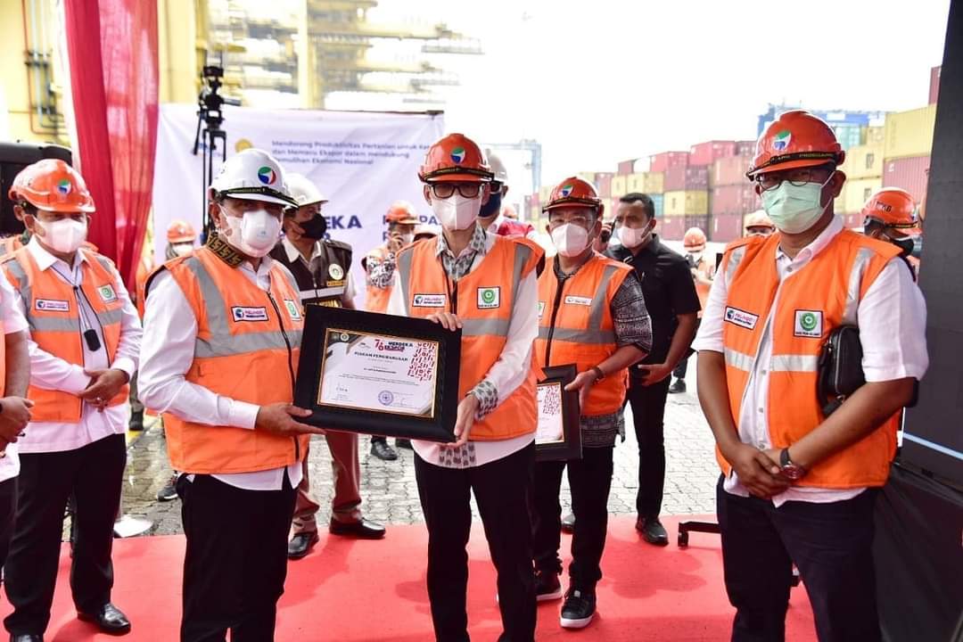 Belawan, Karosatuklik.com – Gubernur Sumatera Utara (Sumut) Edy Rahmayadi melepas ekspor 33 jenis komoditas pertanian senilai Rp431,67 miliar ke 37 negara tujuan. Antara lain Kopi Biji, Minyak Sawit, Pinang, Bunga Krisan, Asam Potong, hingga ubi jalar beku.