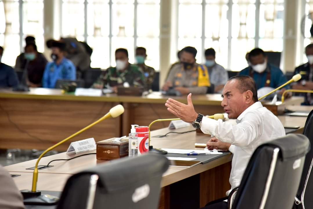 “Kita tidak ingin hal-hal yang negatif mencederai demokrasi di Sumut,” kata Edy Rahmayadi usai rapat evaluasi PSU Pilkada Serentak Tahun 2020 di Aula Tengku Rizal Nurdin, Jalan Sudirman Nomor 41, Medan, Jumat (16/4/2021).