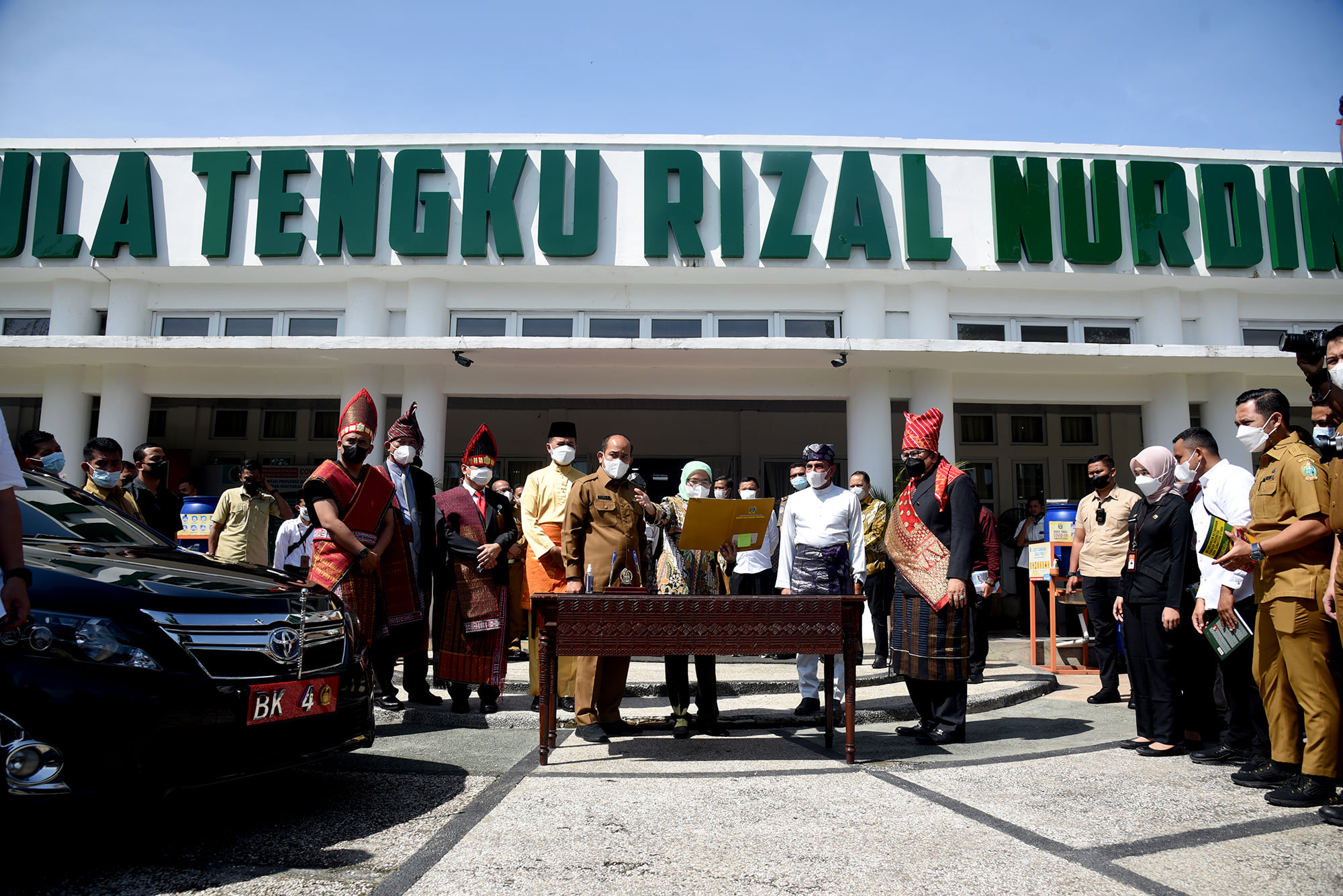 Sebelum meninggalkan lokasi acara, Sabrina pun menyerahkan tiga unit mobil dinas yang selama ini dipergunakanya, mobil dinas itu secara simbolis diserahkan kepada Gubernur Edy Rahmayadi. (R1)
