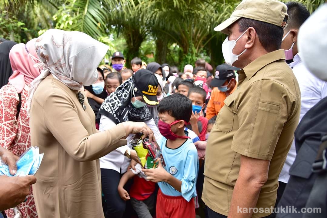 Terakhir, Gubernur dan rombongan membagikan bantuan pada masyarakat Desa Bingai Kecamatan Wampu, yakni 100 paket sembako, 2.500 masker, 100 handsanitizer, 100 sarung dan 100 paket makanan ringan anak.