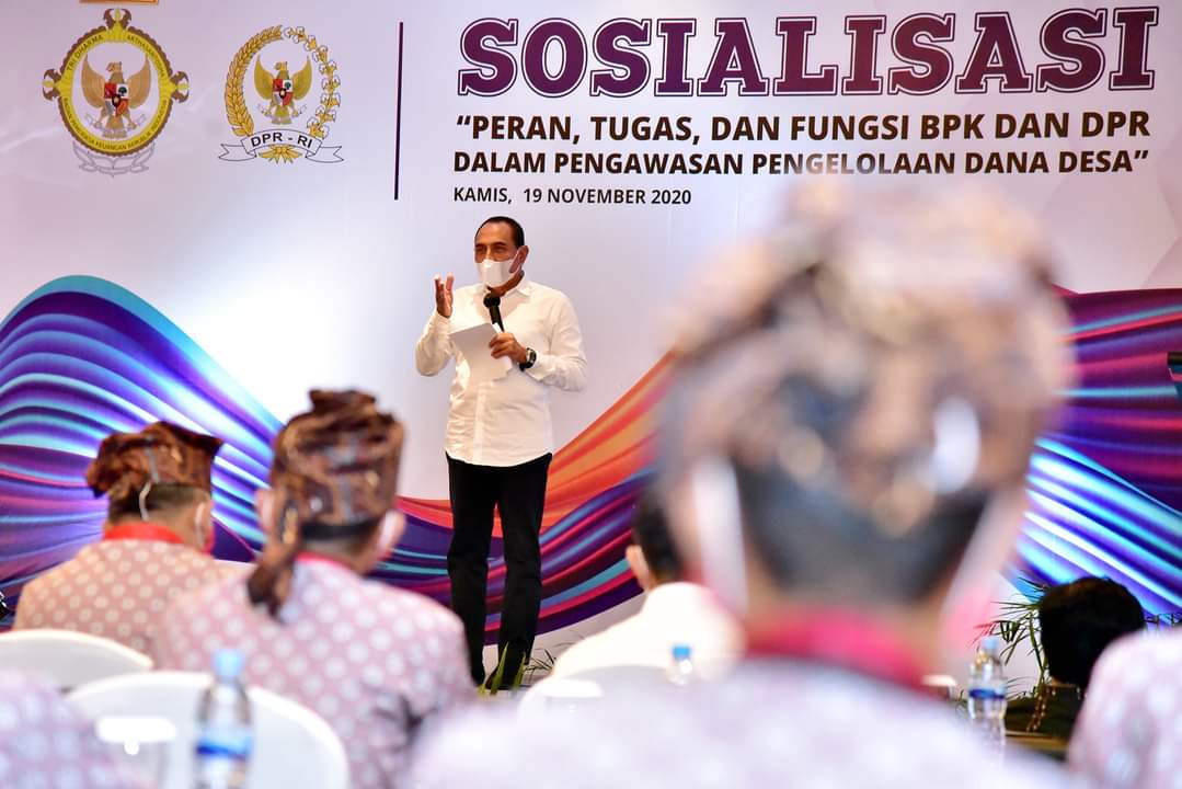 Hal tersebut disampaikan Gubernur Edy Rahmayadi saat menghadiri Sosialisasi Peran dan Fungsi Badan Pemeriksa Keuangan (BPK) dan Dewan Perwakilan Rakyat (DPR) Dalam Pengawasan Pengelolaan Dana Desa di Hotel JW Marriot, Jalan Putri Hijau Medan, Kamis (19/11/2020).