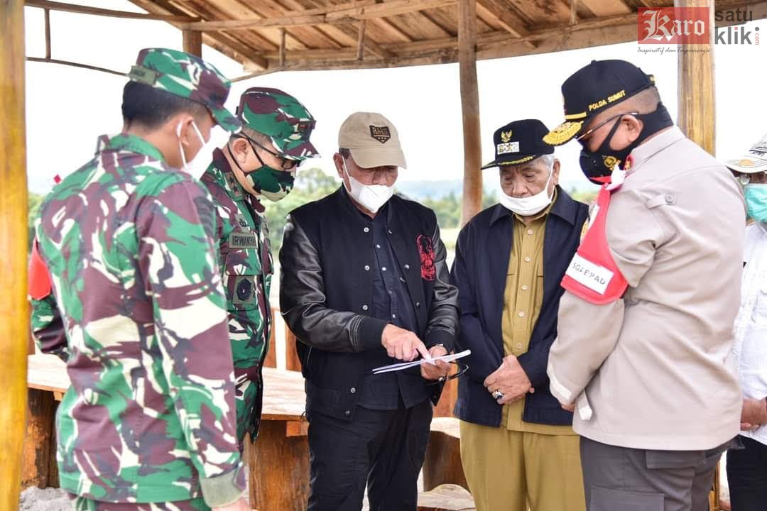 Gubernur bersama Kapolda Sumut Irjen Pol Martuani Sormin dan Pangdam I/BB Mayjend TNI Irwansyah, untuk melihat lahan program Food Estate yang akan dimulai untuk tahap pertama, ditanami kentang, bawang merah, bawang putih wortel dan lainnya.