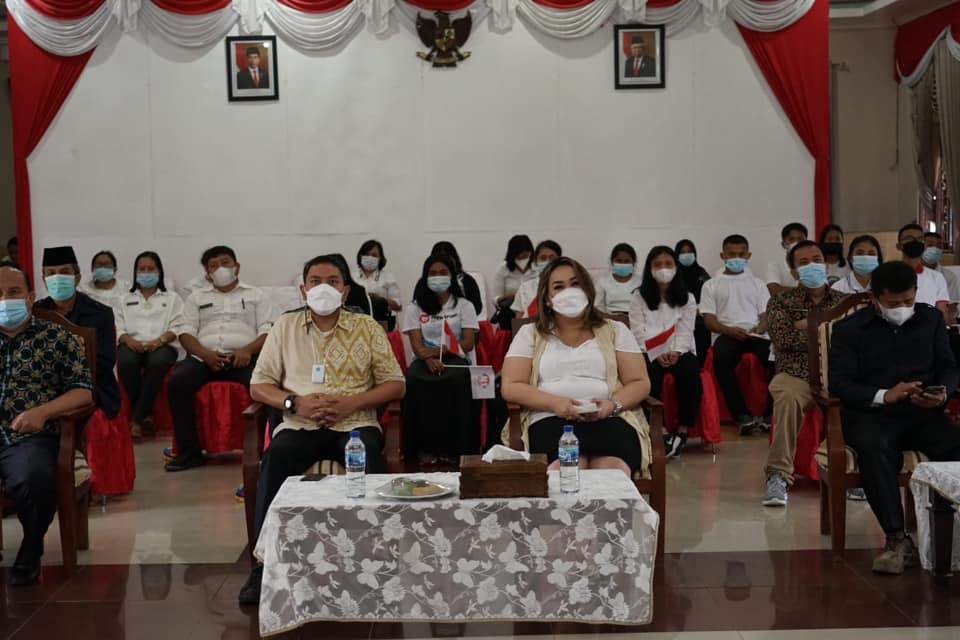 Bupati Pakpak Bharat Franc Bernhard Tumanggor bersama istri yang juga Ketua TP PKK Pakpak Bharat Ny. Juniatry Franc Bernhard Tumanggor mengikuti puncak peringatan Hari Anak Nasional 2021 dengan Presiden RI Joko Widodo yang digelar secara virtual, Jumat (23/07/2021) dari Gedung Balai Sada Arih, Kompleks Kantor Bupati Pakpak Bharat.