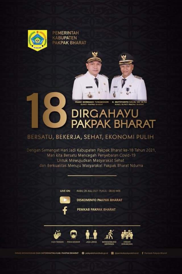 Peringatan Hari Jadi Pakpak Bharat ke-18, mengusung thema “Dengan Semangat Hari Jadi Kabupaten Pakpak Bharat Ke-18 Tahun 2021, Mari Kita Bersatu Mencegah Penyebaran Covid -19 Untuk Mewujudkan Masyarakat Sehat dan Berkualitas Menuju Masyarakat Pakpak Bharat Nduma,”