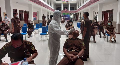 Rapid test antigen dilakukan kepada mulai dari Kepala Kejati Sumut IBN Wiswantanu hingga cleaning service yang ada di sana.
