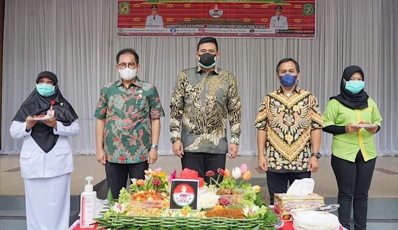 Pada kesempatan itu, Bobby memotong nasi tumpeng sebagai perayaan HUT ke-93 RSUD Pirngadi.