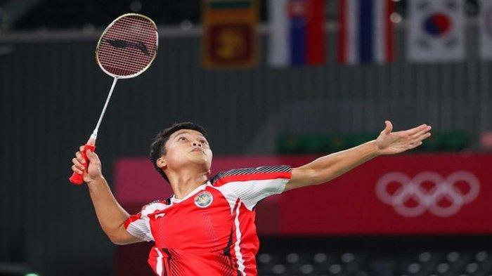 Berlaga di Musashino Forest Sport Plaza, Tokyo, Ginting memenangkan duel perempatfinal menegangkan lewat rubbergame 21-18, 15-21 dan 21-18, Sabtu 31 Juli 2021.