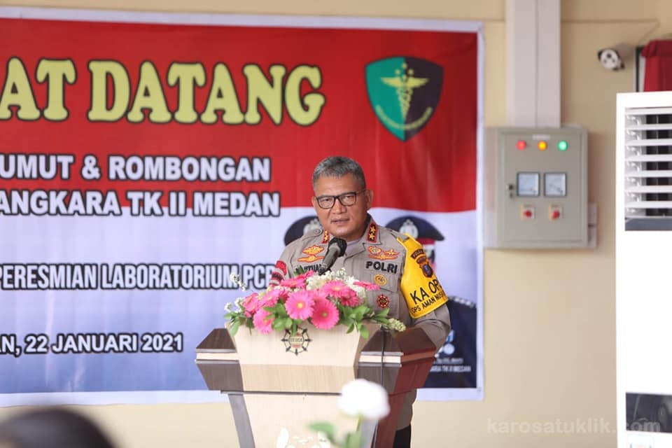 Medan, Karosatuklik.com – Kapolda Sumut Irjen Pol. Drs. Martuani Sormin, M.Si meresmikan pelayanan Laboratorium Polimerase Chain Reaction (PCR) RS Bhayangkara TK II Medan, Jumat (22/01/2021) di Medan.