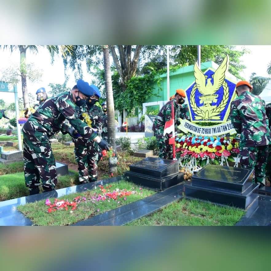 Jakarta, Karosatuklik.com – Wakil Kepala Staf Angkatan Udara (Wakasau) Marsdya TNI Fahru Zaini Isnanto, S.H., M.D.S., memimpin ziarah ke Makam Bapak AURI Marsekal TNI (Purn) R. Suryadi Suryadarma dalam rangka memperingati HUT Ke-75 TNI Angkatan Udara, di Taman Pemakaman Umum (TPU) Karet Bivak, Jakarta. Kamis (8/4/2021).