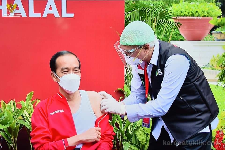 Jakarta, Karosatuklik.com – Presiden Joko Widodo (Jokowi) menjalani vaksinasi ke-2 di Istana Kepresidenan. Selain Jokowi, ada sejumlah tokoh lain yang juga ikut vaksinasi.
