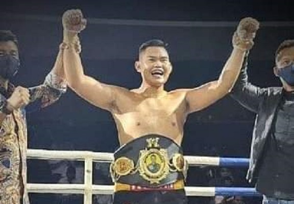 Pukulan itu membuat David berlutut dan akhirnya dinyatakan TKO oleh wasit.