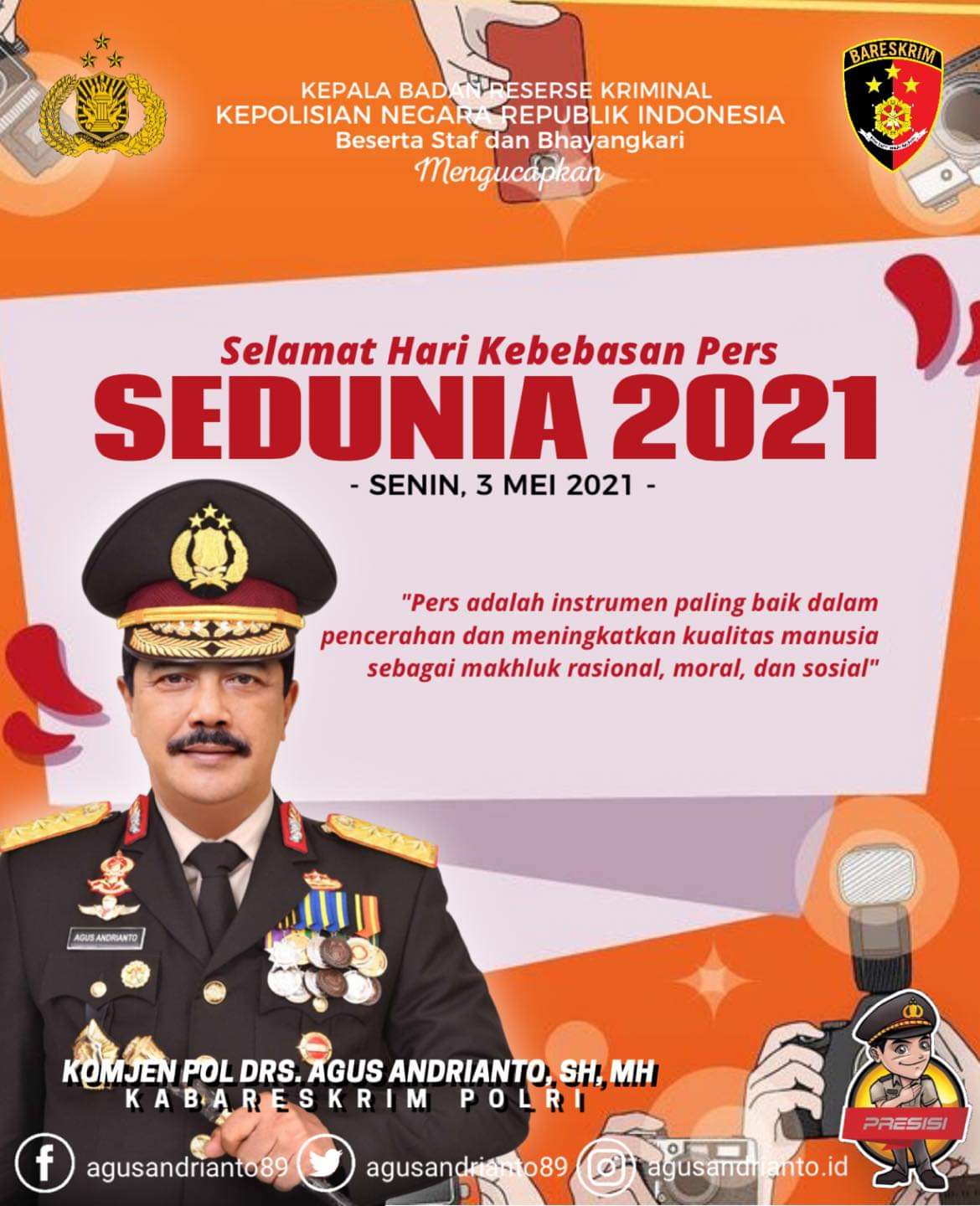 Dalam sambutannya Kabareskrim Polri Komjen Pol Agus Andrianto menyampaikan tantangan yang dihadapi oleh pemerintah saat ini dalam menanggulangi pandemi Covid-19 dan pemulihan ekonomi nasional.