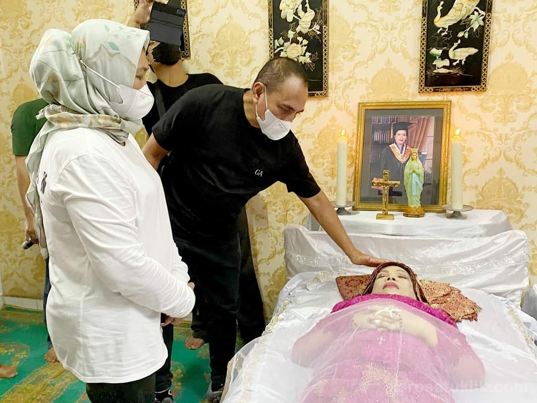 Gubernur Sumut Edy Rahmayadi bersama Ketua Tim Penggerak Pemberdayaan dan Kesejahteraan Keluarga (TP PKK) Provinsi Sumut, Nawal Edy Rahmayadi yang sedang berolahraga, Minggu (10/1) pagi, langsung melayat ke rumah duka, setelah mendengar kabar meninggalnya Kepala Biro Perekonomian Ernita Br Bangun.