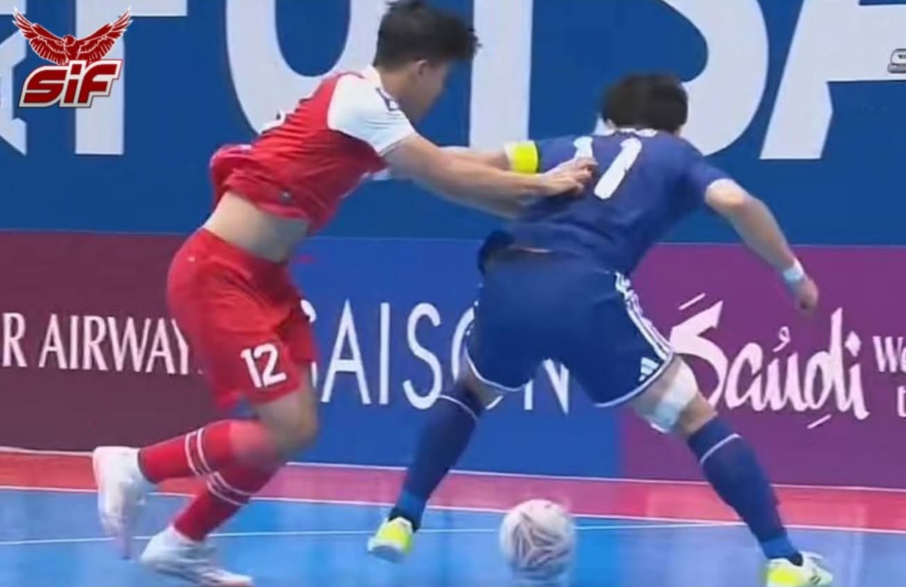 Duel antara Timnas Futsal Indonesia dan Jepang berlangsung ketat sejak peluit awal dibunyikan.