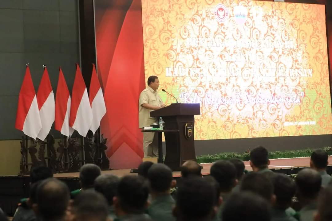 Menhan RI Prabowo Subianto dalam arahannya menyampaikan terkait Bela Negara dan Sishankamrata (Sistem Pertahanan Keamanan Rakyat Semesta)