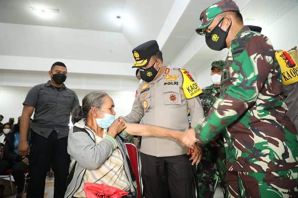 “Tidak sakit divaksinkan bu. Ya, suntikan vaksin ini biar imunitas tubuh kita tetap sehat,” ucap Irjen Pol Panca kepada seorang wanita yang telah menerima suntikan vaksin tersebut.