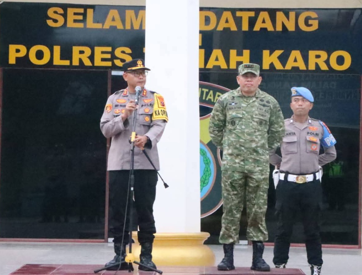 Untuk memastikan seluruh rangkaian kegiatan berjalan tertib dan kondusif, Kapolres Karo AKBP Pebriandi Haloho, SH, SIK, MSi, bersama Dandim 0205/TK Letkol Inf. Robert Panjaitan memimpin langsung apel kesiapan pengamanan malam takbiran, Jumat (20/3/2026) Pukul 17.00 WIB.