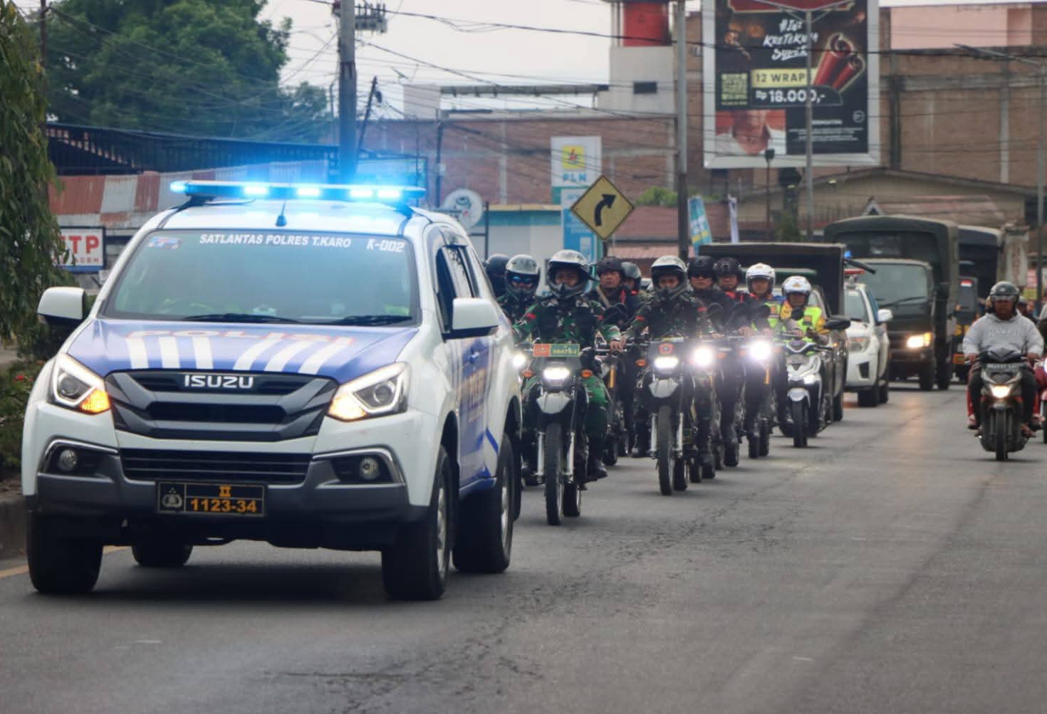 Usai pelaksanaan apel, Kapolres Tanah Karo bersama Dandim 0205/TK secara resmi melepas patroli show force gabungan yang mengitari Kota Kabanjahe sebagai tanda kesiapan aparat dalam menjaga situasi kamtibmas.