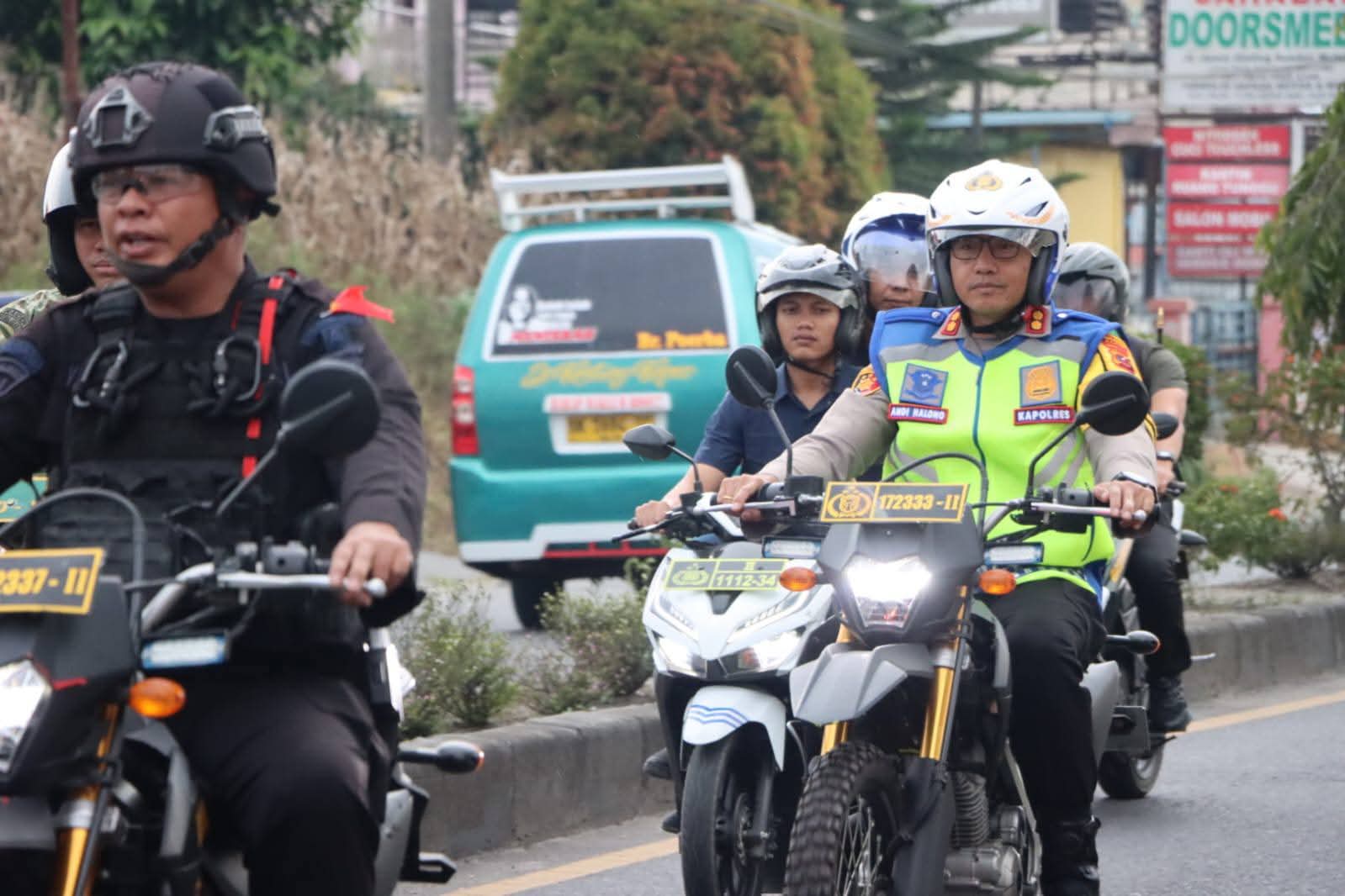 Tidak hanya melepas patroli, Kapolres bersama Dandim juga turun langsung berpatroli menggunakan sepeda motor (R2) menyusuri sejumlah ruas jalan di Kota Kabanjahe untuk memantau situasi keamanan secara langsung.