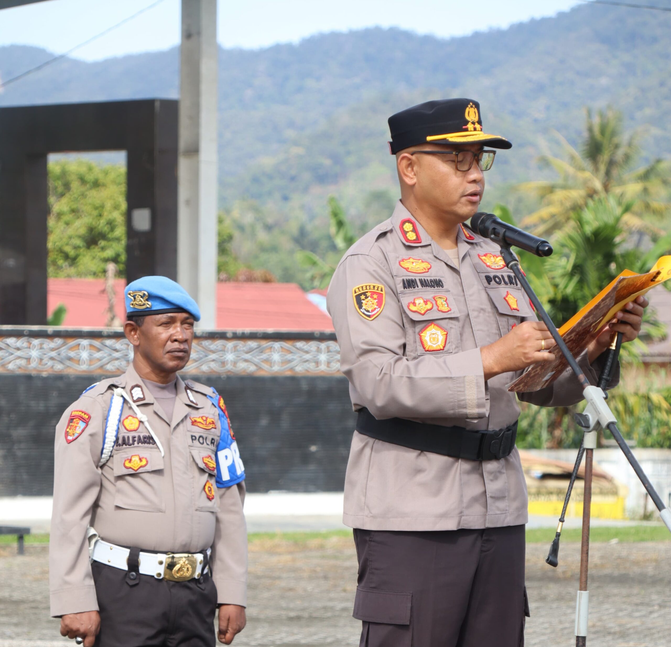 Kapolres Pakpak Bharat AKBP Pebriandi Haloho S.H., S.I.K., M.Si bertindak selaku Pimpinan Apel, Perwira Apel Kasat Binmas Iptu Gembira Sembiring dan Ipda Bandar P. Manurung, S.H selaku Komandan Apel.