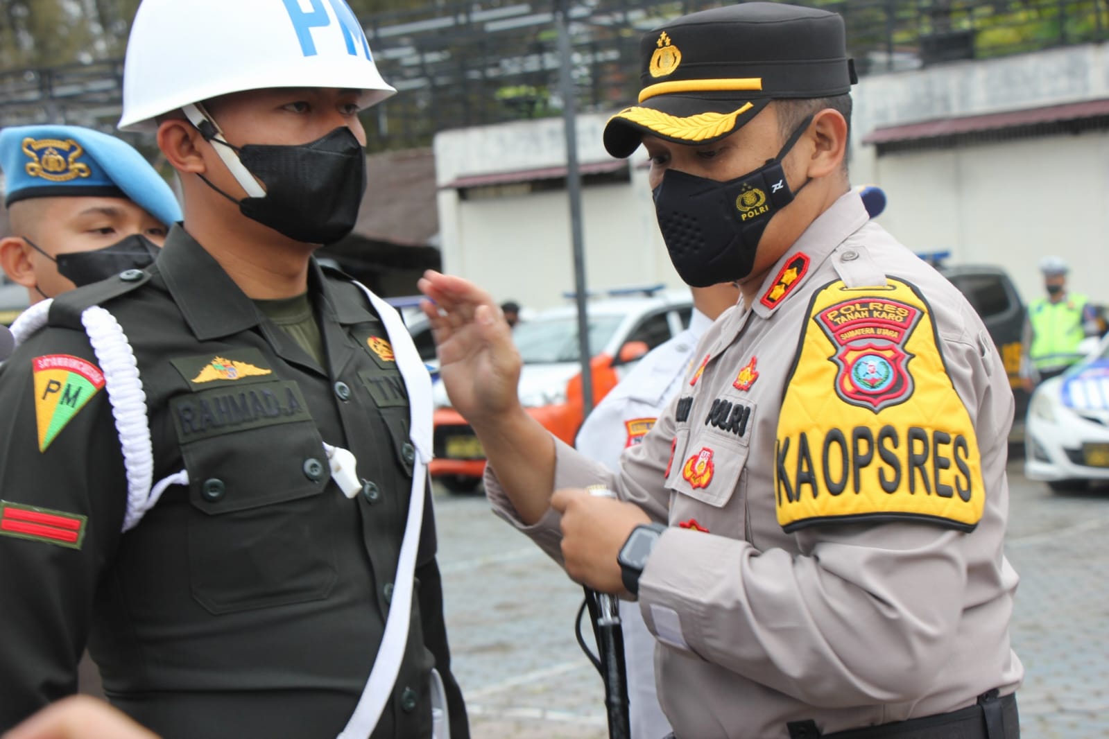 Dalam apel, Kapolres Tanah Karo membacakan amanat Kapolda Sumut Irjen Pol RZ. Panca Putra, M.Si.