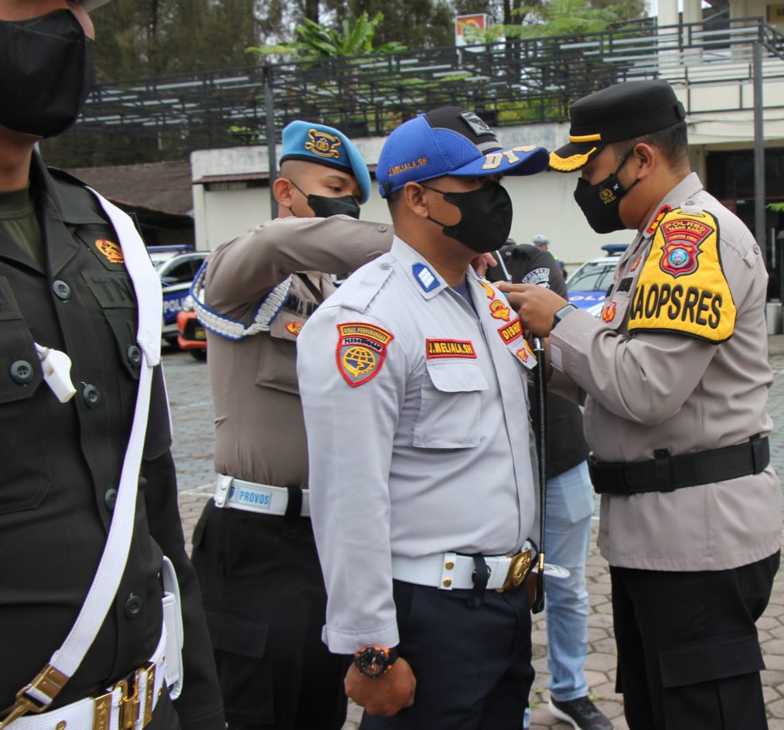 Bertindak sebagai Perwira Apel adalah Kasat Lantas AKP Bevan Raga Utama, S.I.K dan Komandan Apel Kanit Laka Lantas Ipda Tina Parhusip, SH.