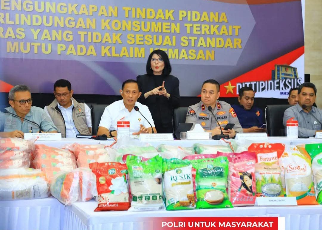 Saat ini Polri telah melakukan uji laboratorium terhadap 9 merek beras, di mana 8 merek dinyatakan tidak sesuai standar mutu atau SNI.