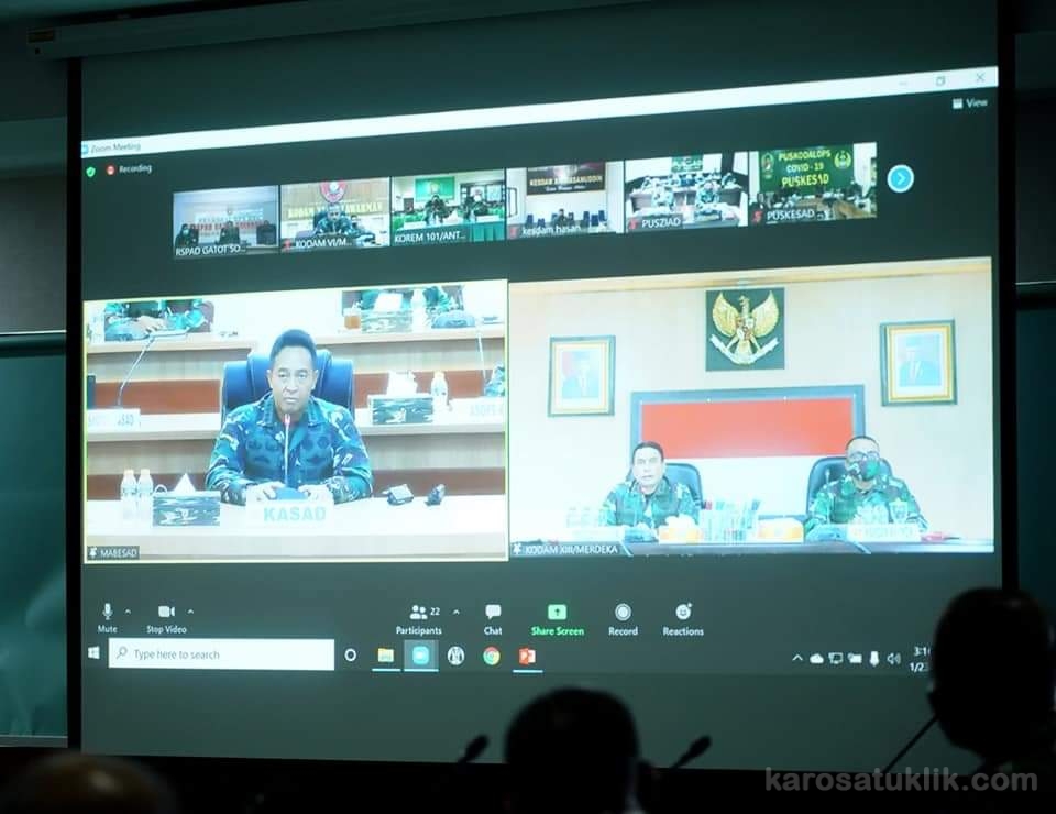 Kepala Staf Angkatan Darat (Kasad) Jenderal TNI Andika Perkasa, dalam Video Conference (Vicon) yang digelar di Ruang Yudha Kodam XIII/Merdeka, Sabtu (23/1/2021).
