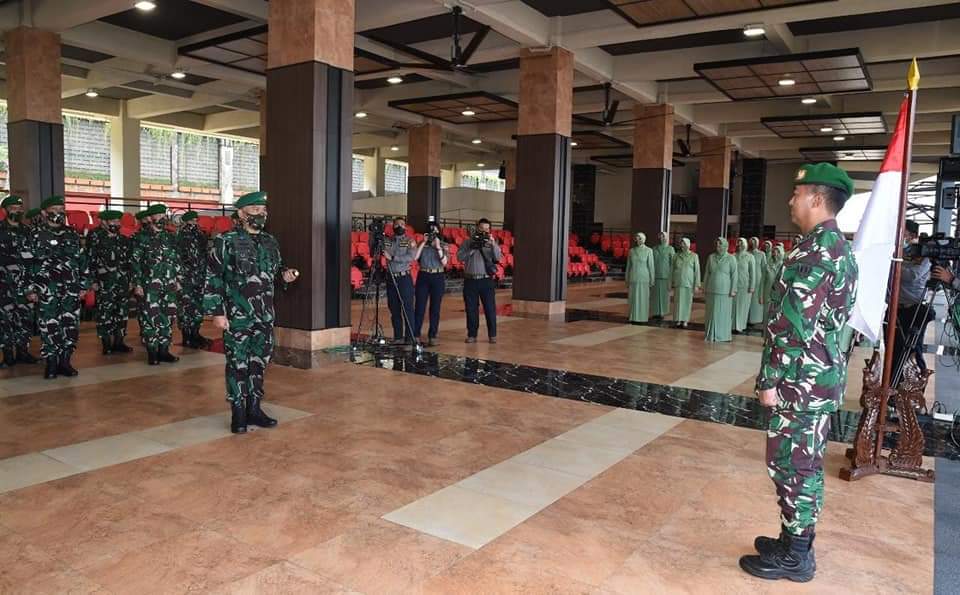Jakarta, Karosatuklik.com – Kepala Staf Angkatan Darat (Kasad) Jenderal TNI Andika Perkasa menerima Laporan Korps Kenaikan Pangkat 16 Perwira Tinggi (Pati) TNI AD, bertempat di Lantai Dasar Gedung E, Mabesad, Jakarta Pusat, Jumat (26/3/2021).