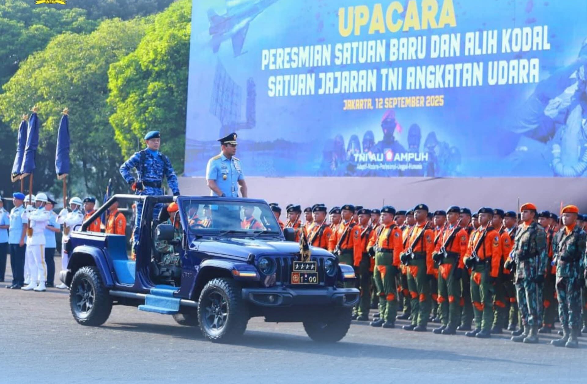 Jakarta, Karosatuklik.com – Kepala Staf Angkatan Udara (Kasau) Marsekal TNI M. Tonny Harjono, S.E., M.M. memimpin upacara peresmian satuan baru dan alih komando dan pengendalian (Kodal) satuan jajaran TNI AU di Mabesau, Jakarta, Jumat (12/9/2025).