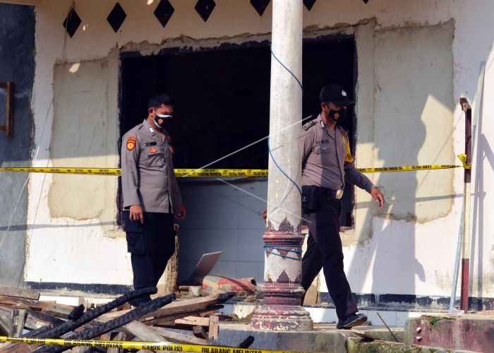 “Gedung Mapolsek ini sebenarnya sedang dalam perawatan,” kata Hazuan saat menjelaskan peristiwa kantor polisi dibakar di Lampung. (Pos Kota)