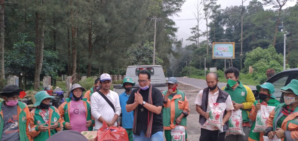 Berastagi, Karosatuklik.com – Merasa perihatin kehidupan petugas penyapu jalan di masa pandemi Covid-19, Pdt Masada Sinukaban, Msi kembali salurkan bantuan sosial.