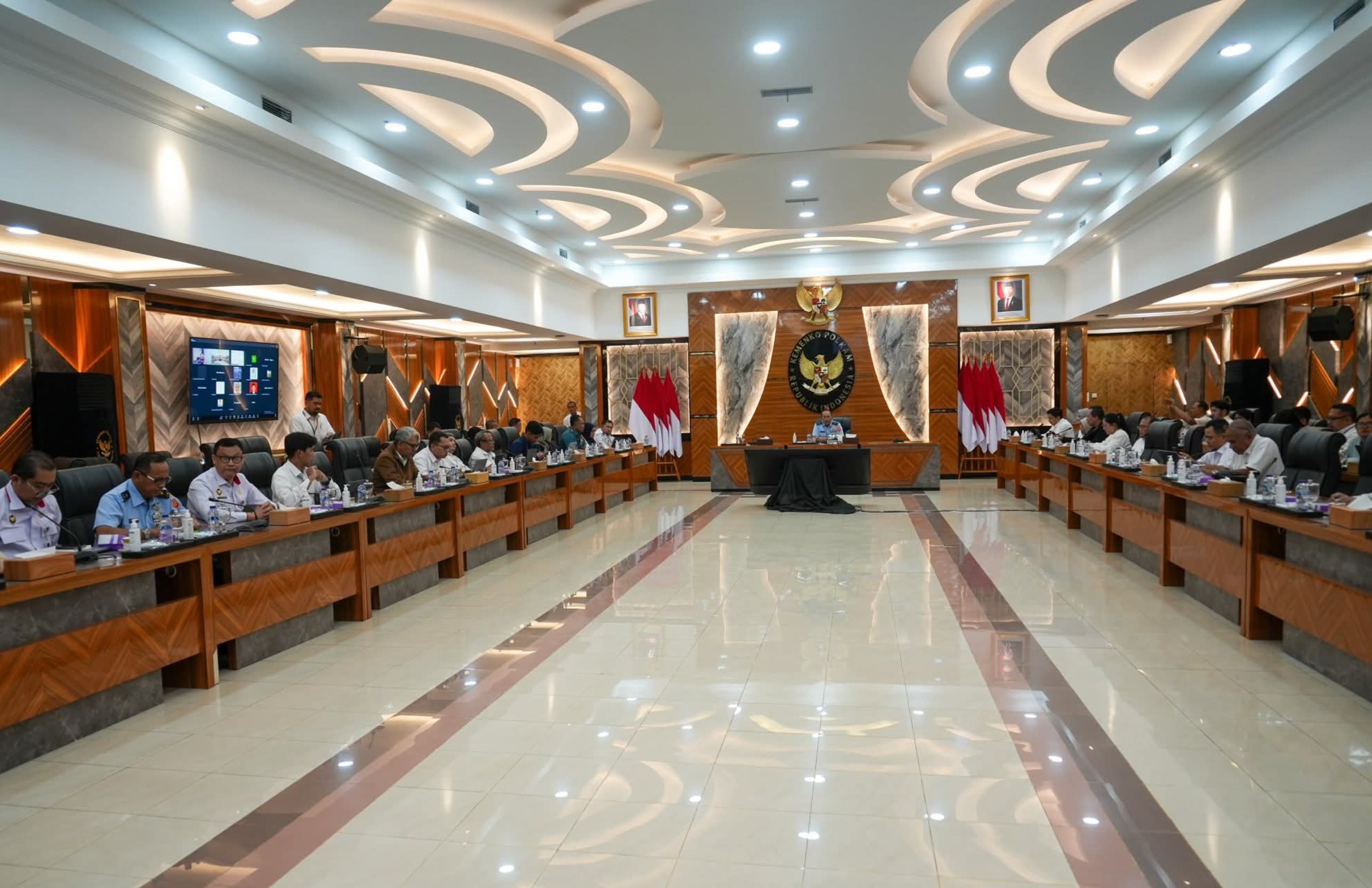 Rakor yang dilaksanakan secara hybrid ini dihadiri oleh perwakilan Kementerian/Lembaga, unsur TNI- Polri, serta pihak terkait lainnya. (R1)