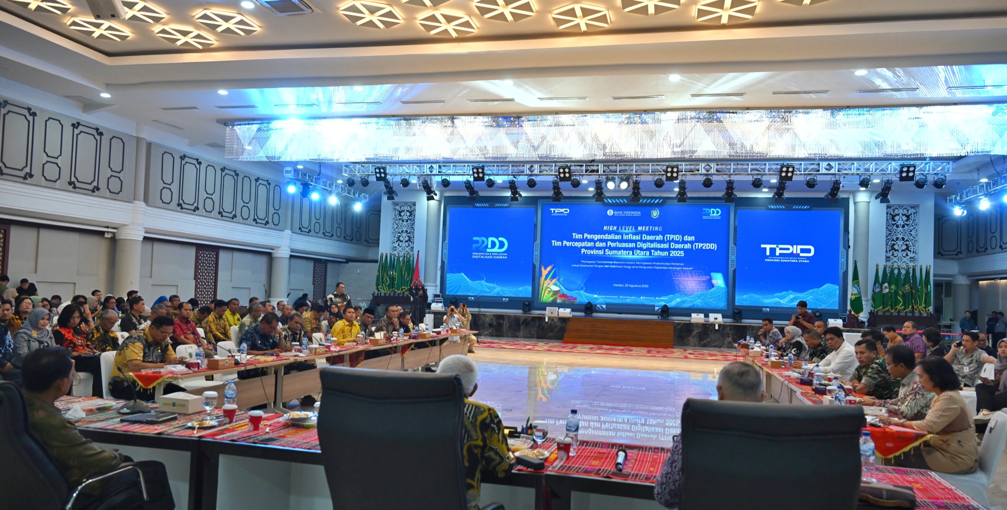 Pertemuan ini digelar dalam rangka memperkuat sinergi antara Pemerintah Provinsi Sumatera Utara bersama pemerintah kabupaten/kota se-Sumut untuk mengendalikan inflasi sekaligus mempercepat implementasi elektronifikasi transaksi pemerintah daerah (ETPD).