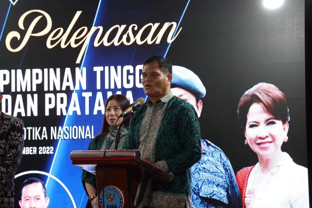 “Saya juga mengucapkan penghargaan yang setinggi-tingginya dan terima kasih yang sebanyak-banyaknya atas pengabdian dan loyalitas yang telah Saudara-Saudara berikan selama menjalankan tugas di BNN.”