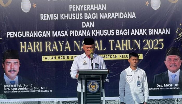 Kepala Rumah Tahanan Kelas IIB Kabanjahe, Sangapta Surbakti ikut menyaksikan penyerahan Zakat sebesar Rp1,1 Miliar dari Kementerian Hukum dan HAM (Kemenkumham) kepada Badan Amil Zakat Nasional (Baznas) secara daring melalui Zoom, Senin (25/04/2022).