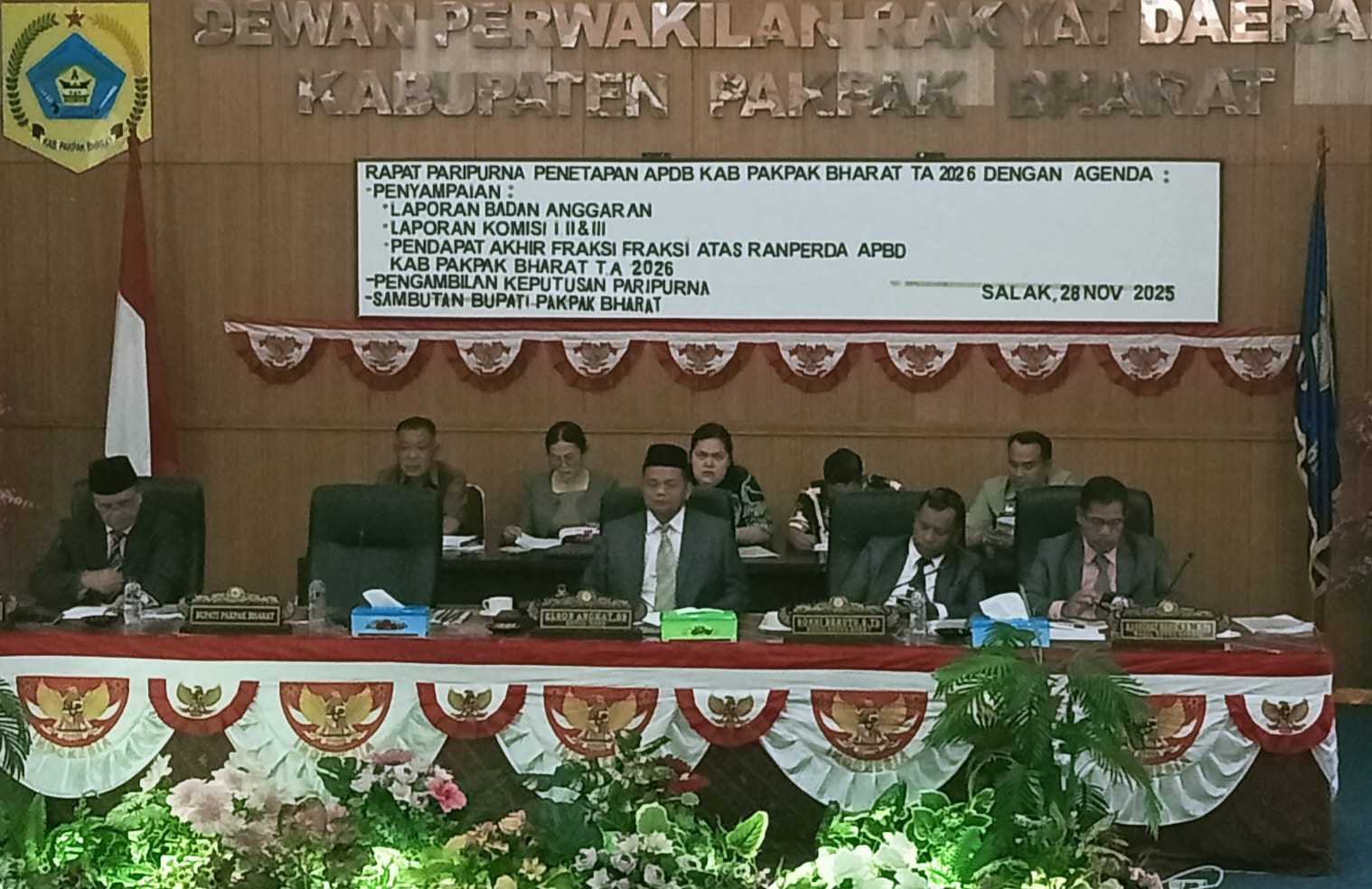Salak, Karosatuklik.com – Dewan Perwakilan Rakyat Daerah (DPRD) Pakpak Bharat menggelar Rapat Paripurna Penetapan APBD Kabupaten Pakpak Tahun Anggaran 2026 di Gedung DPRD Pakpak Bharat Panorama Indah Delleng Sindeka, Jumat (28/11/2025).