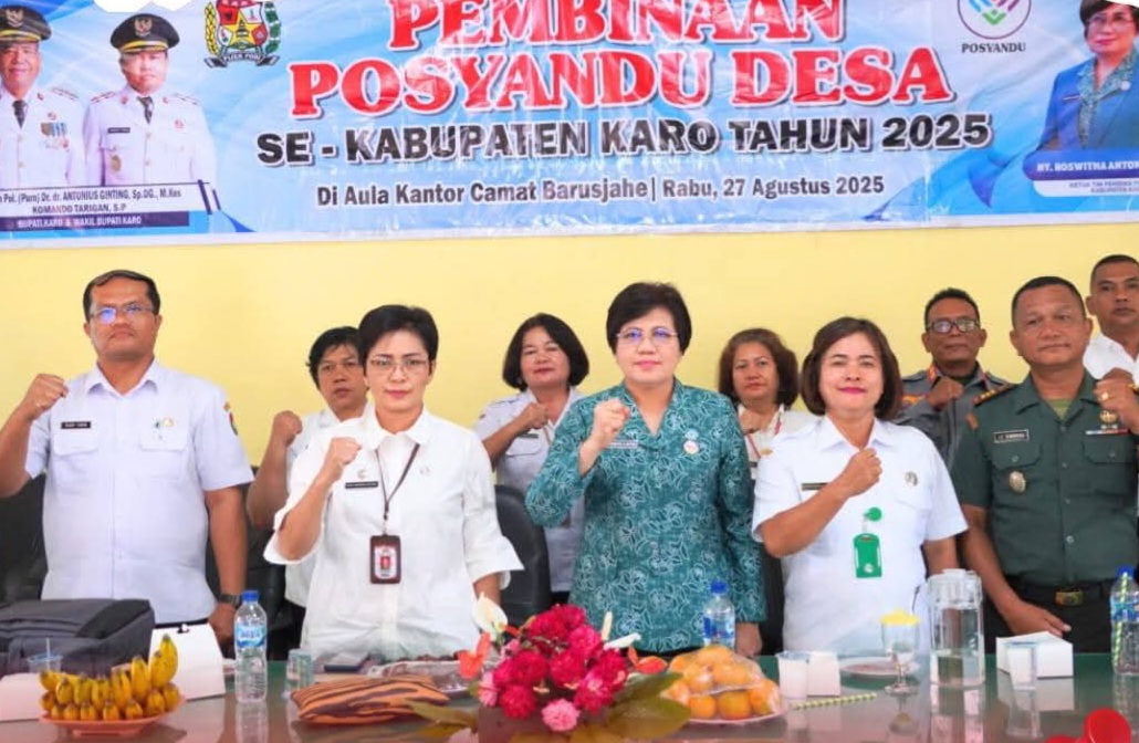 Barusjahe, Karosatuklik.com – Ketua Tim Pembina Posyandu Kabupaten Karo, Roswitha Antonius Ginting, secara resmi membuka Pembinaan Posyandu Desa se-Kabupaten Karo Tahun 2025 yang dilaksanakan di Aula Kantor Camat Barusjahe, Selasa (27/8/2025).