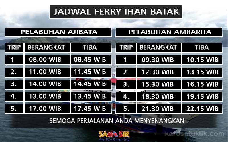 KMP Kaldera Toba dan Jurung-jurung melengkapi dua kapal yang sudah melayani lintasan Ajibata – Ambarita yaitu KMP Ihan Batak dan KMP Pora-Pora. Diperoleh informasi, akan menyusul penambahan KMP lagi. (R1)
