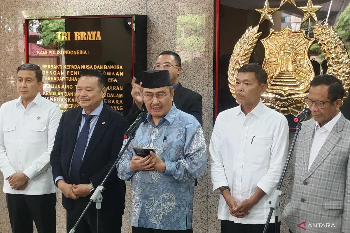 Berikutnya, Menteri Dalam Negeri sekaligus Kapolri periode 2016–2019 Jenderal Polisi (Purn) Tito Karnavian; Menteri Hukum Supratman Andi Agtas; Menteri Koordinator Bidang Politik, Hukum dan Keamanan periode 2019–2024 sekaligus Ketua Mahkamah Konstitusi periode 2008–2013 Mahfud MD, Kapolri periode 2019–2021 Jenderal Polisi (Purn) Idham Aziz; dan Kapolri periode 2015–2016 Jenderal Polisi (Purn) Badrodin Haiti. (Ant)
