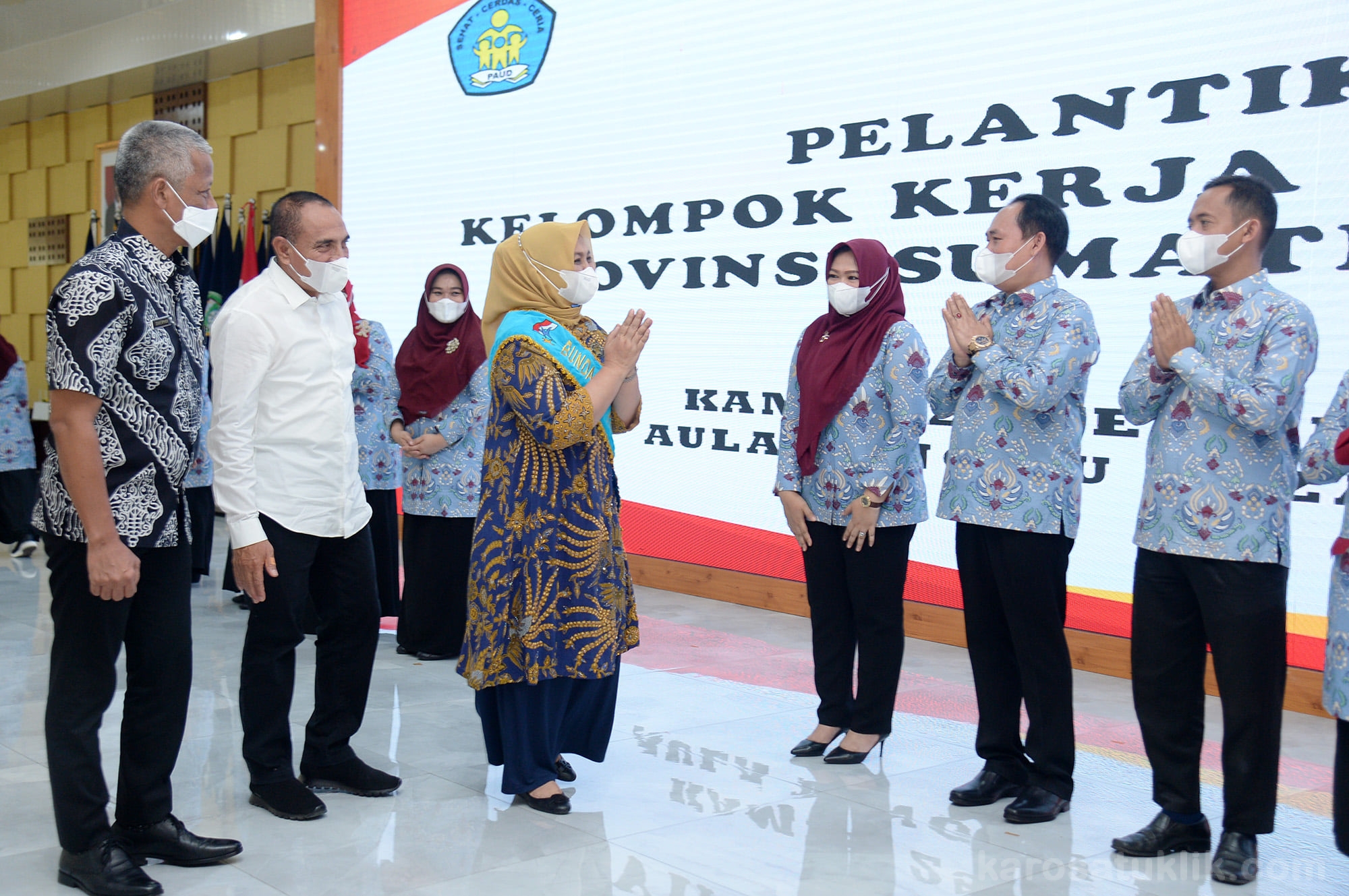 Medan, Karosatuklik.com – Gubernur Sumatera Utara (Sumut) Edy Rahmayadi mengukuhkan Kelompok Kerja (Pokja) Bunda Pendidikan Anak Usia Dini (PAUD) Sumut di Aula Tengku Rizal Nurdin, Rumah Dinas Gubernur, Jalan Jenderal Sudirman Nomor 41, Medan, Kamis (25/2/2021).