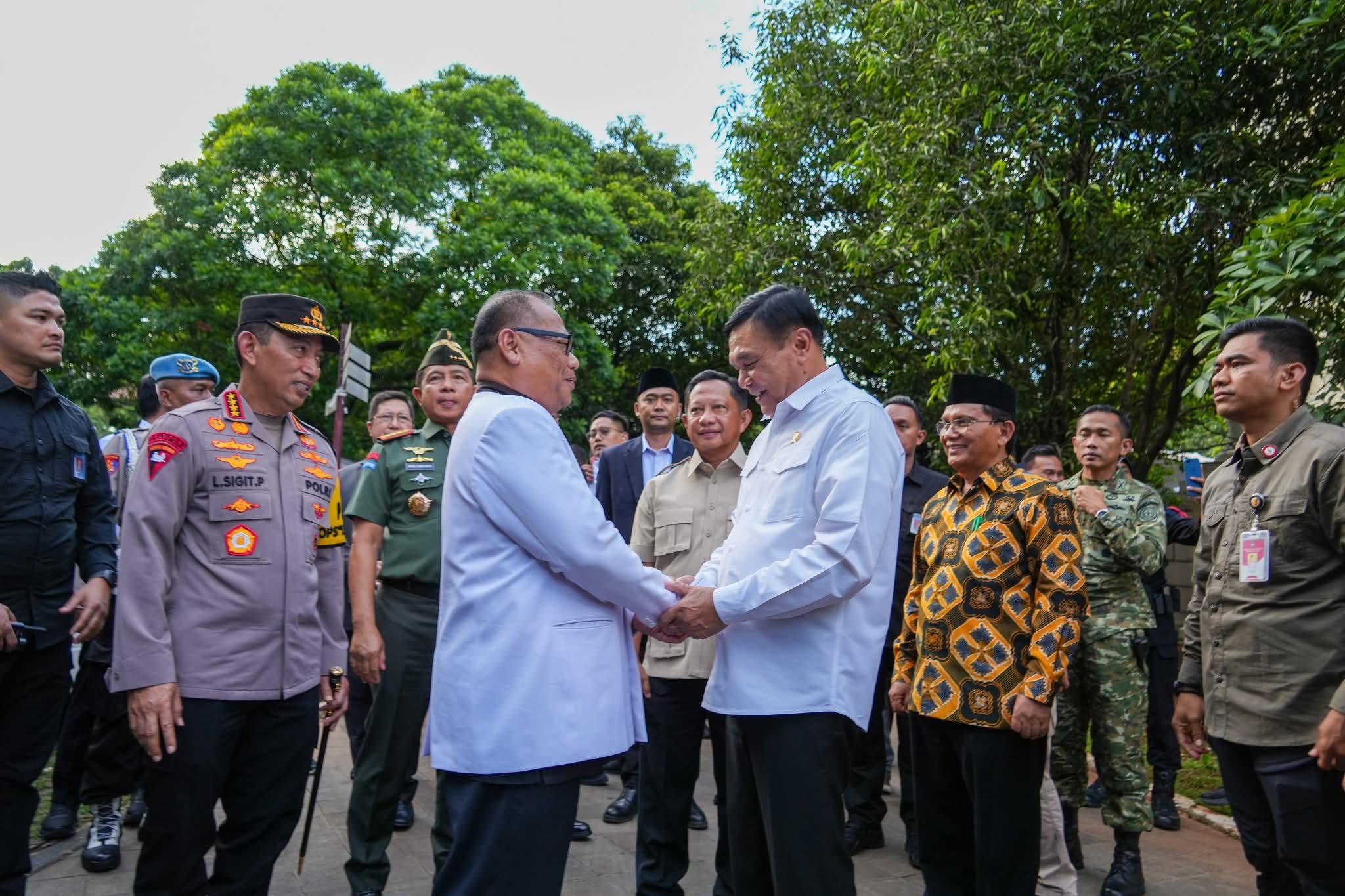 “Oleh karena itu, kami juga menyampaikan kepada umat di sini untuk turut mendoakan agar mereka segera bisa mengatasi ini semua, termasuk mendoakan pemerintah untuk bisa segera menyelesaikan, membantu masalah-masalah yang dihadapi oleh bangsa ini,” kata Menko Djamari.