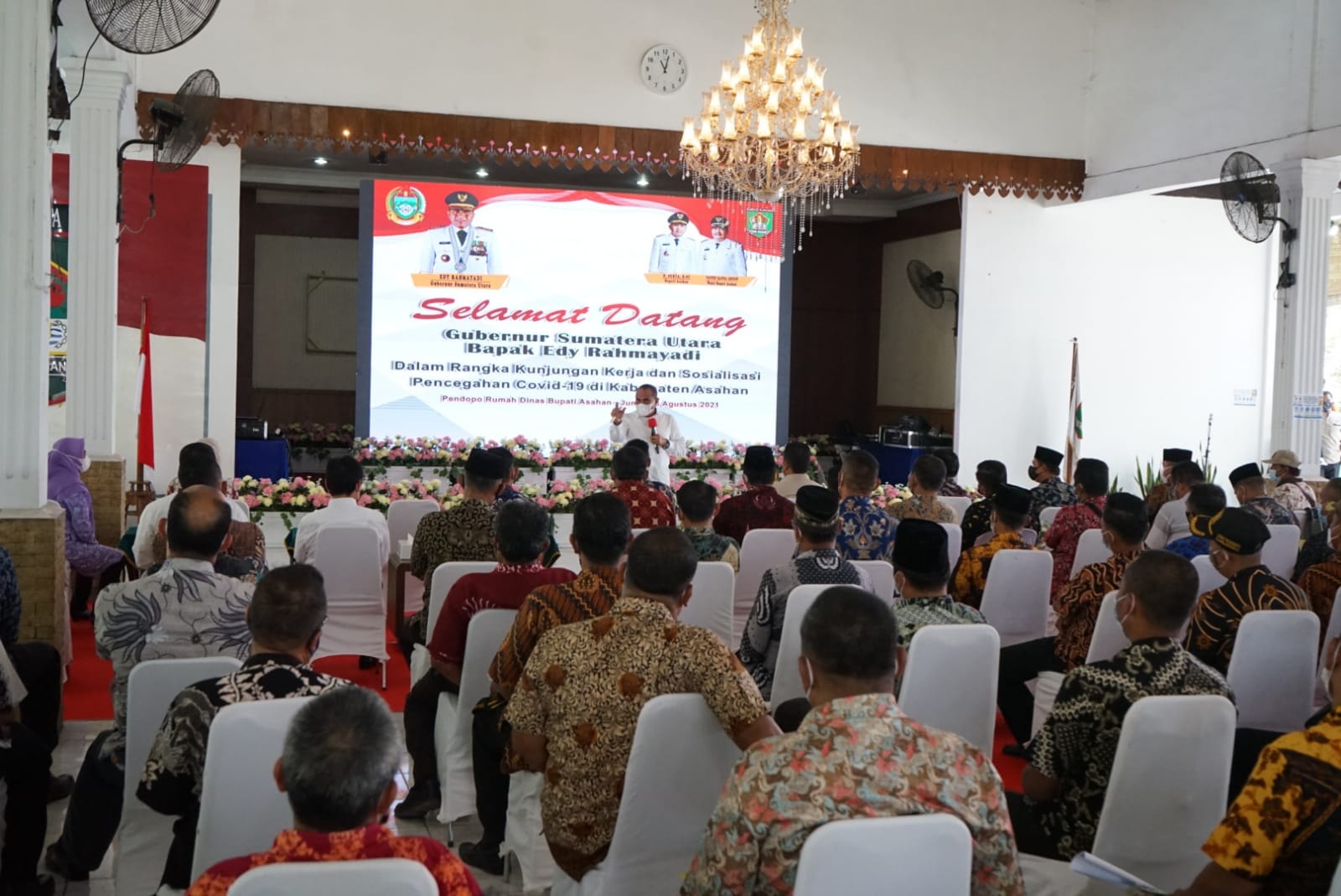 Usai meninjau PT. Hijau Surya Biotechindo, Gubsu beserta rombongan, Bupati Asahan dan Wakil Bupati Asahan langsung menuju ke Pendopo Rumah Dinas Bupati Asahan untuk melanjutkan kegiatan sosialisasi pencegahan Covid-19 di Kabupaten Asahan yang juga dihadiri Dandim 0208/Asahan, Kapolres Asahan, Kajari Asahan, Danyon 126/KC, mewakili Danlanal Tanjung Balai Asahan, Sekretaris Daerah Kabupaten Asahan, OPD, Camat se-Kabupaten Asahan, Kepala Desa/Lurah se-Kabupaten, beberapa Kepala Sekolah SMA, SMK dan tamu undangan lainnya.