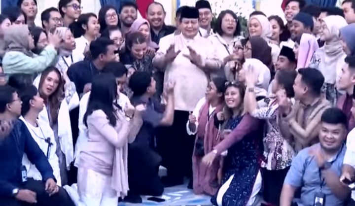 Presiden Prabowo langsung menyanggupinya dan langsung meminta kepada wartawan diajarkan caranya. “Ya kamu duluan (ajarkan),” kata Presiden.