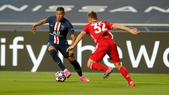 Kylian Mbappe yang berhasil lepas dari kawalan pemain belakang, melepaskan tembakan keras, namun masih melenceng di sisi kanan gawang Bayern.