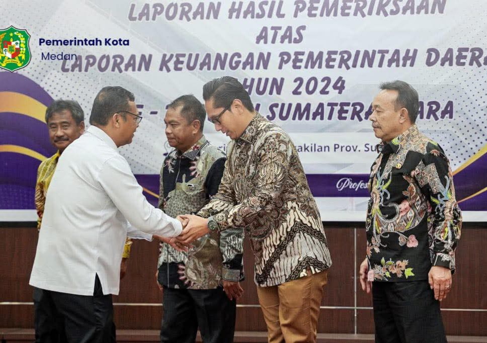Medan, Karosatuklik.com – Pemko Medan kembali mendapat opini Wajar Tanpa Pengecualian (WTP) dari Badan Pemeriksa Keuangan (BPK) RI Perwakilan Sumut atas Laporan Keuangan Pemerintahan Daerah (LKPD) Kota Medan Tahun Anggaran 2024. Ini berarti sudah lima kali berturut-turut Pemko Medan meraih opini membanggakan itu.