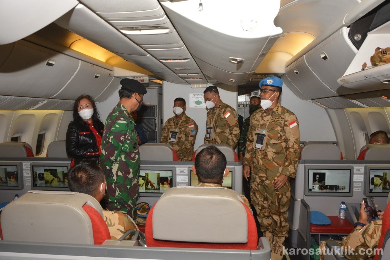 Jakarta, Karosatuklik.com – Markas Besar Tentara Nasional Indonesia (TNI) memberangkatkan prajurit TNI yang tergabung dalam delapan Satuan Tugas (Satgas) TNI Kontingen Garuda (Konga) United Nations Interim Force in Lebanon (UNIFIL) yaitu Indobatt, Civil Military Coordination (CIMIC), Level II Hospital, Force Protection Company (FPC), Force Headquarters Support Unit (FHQSU) , Military Police Unit (MPU), Military Community Outreach Unit (MCOU) dan Military Staff (Milstaff) bertempat di Bandara Internasional Soekarno-Hatta, Cengkareng, Tangerang, Senin malam (21/12/2020).