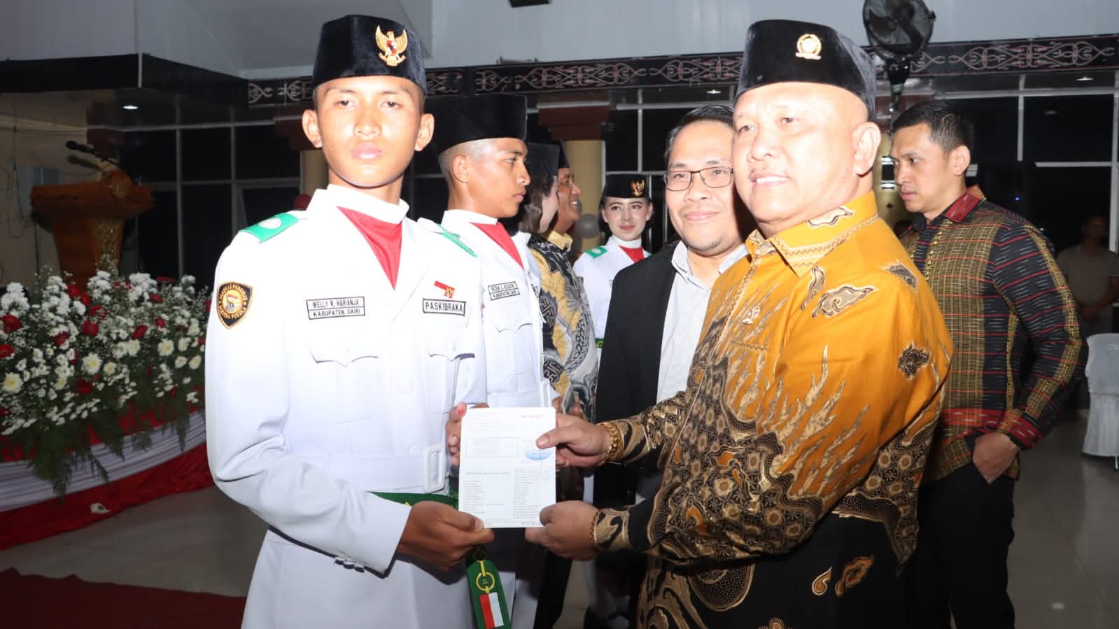 Untuk anggota Paskibraka, Bupati Dairi berujar hal ini akan menjadi sejarah dalam hidup dan menjadi tanggung jawab yang besar. Oleh karena itu, Ia berpesan adik-adik harus berterimakasih kepada Tuhan yang memberikan rasa kasih sehingga semua sempurna tugas yang dijalankan.