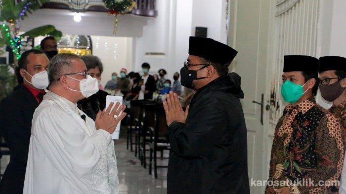 Tak berselang lama, Yaqut masuk didampingi beberapa orang untuk menyaksikan para jemaat yang menggelar kebaktian malam Natal dengan penerapan protokol kesehatan.